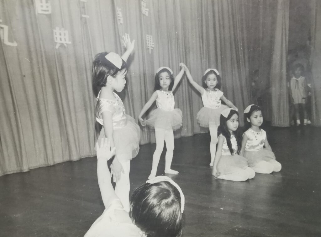 時光驀然流轉,鏡頭回到一所學校禮堂。那時我還是幼稚園低班的小荳點,被老師選中在高班畢業典禮上表演舞蹈。瘦小的我隨著節奏舞動雙臂,初嘗到表演的單純快樂。畫面跳至「麗的電視」的後台,老師帶著我們一群孩子上電視台兒童節目表演。後台燈光昏暗,我躲在大塊佈景板後面,興奮難耐。這朦朧光影下的等待,竟與我日後成為舞台劇演員、等候登場的情景如出一轍。一晃眼已經數十年,此刻想來,心中湧起一種奇妙的、恍若隔世的感覺 — 原來對舞台的悸動,早已在那懵懂歲月裡悄然而生。