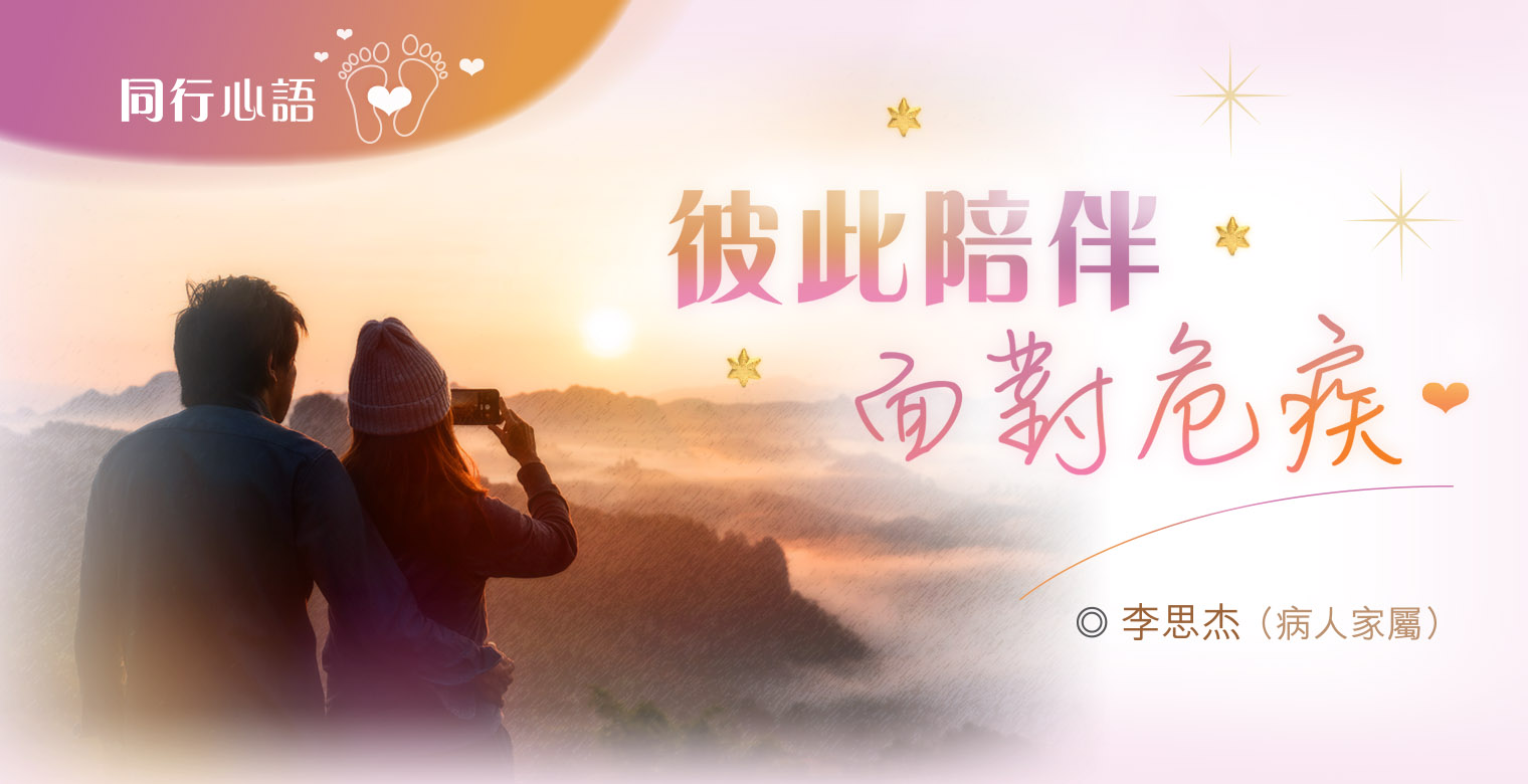 明白疾病和衰老是人生必經的歷程,我們學會了接受提早到來的生命歷程。盡管疾病改變了生活方式,但我們依然有機會嘗試新事物,體驗人生,熱愛生命。在她病後,我們參加了許多有意義的活動,包括前往西班牙徒步行走聖雅各之路、參與毅行者慈善活動、學習跑馬拉松及修讀專業課程等。彼此陪伴能使我們有力量面對該危疾。我們在行山郊遊之際,不時會想起聖經經文:「我要向山舉目,我的幫助從何而來?我的幫助從造天地的耶和華而來。」(詩篇121:1-2)我們感受到神在患難中的陪伴和幫助。陪伴對患病者的生活有積極幫助,祝願各位照顧者身心健康!能夠與家人同行,互相陪伴支持。