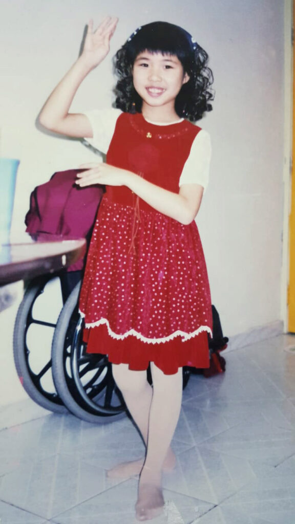 回想當初,縱然活動自如,卻因為健康、人際關係和感情出了問題,不自覺地陷入自憐之中,只看到自己的失去,沒看到家人的擔心,沒看到家人也因我的遭遇而難過。如今再不能活動自如時,反而有靜下來面對自己及思考的空間。看見媽媽為我白了頭髮,外公和姨姨哭個不停,妹妹悉心照顧時,我明白到原來這不是我一個人要走的路,而是我家人會不離不棄,與我同行的路。他們哀我所哀,痛我所痛,我身體受苦,他們則無能為力而痛,所以,我決定要好好的為家人活下去,不要消沉,更不要被痛楚所控制,我的心靈似是被醫治了。