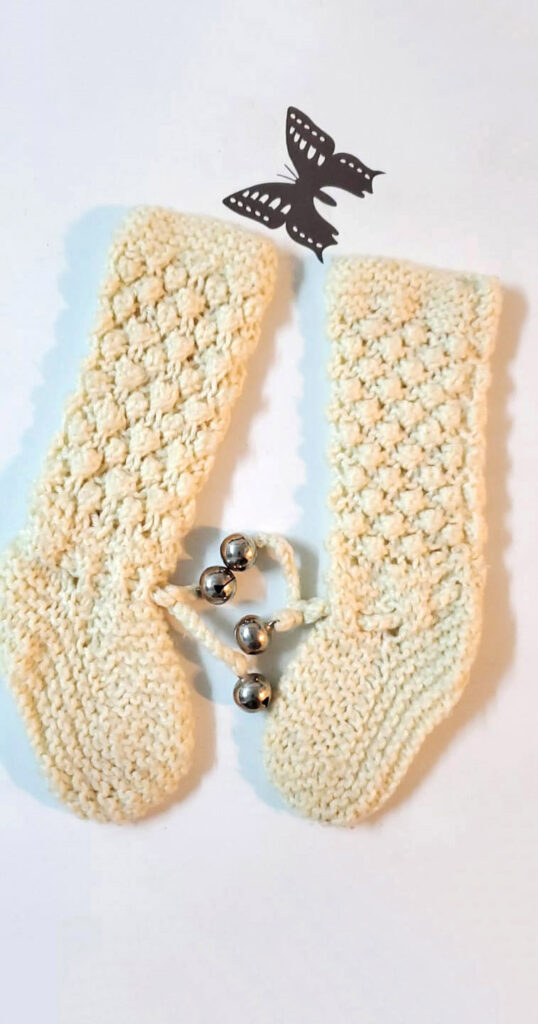 給女兒編織冷襪。聽到鈴聲知道她睡醒了,就放下手頭事情去照顧她。